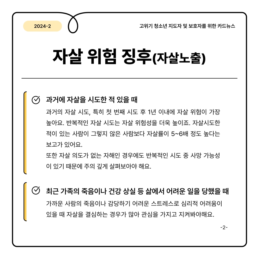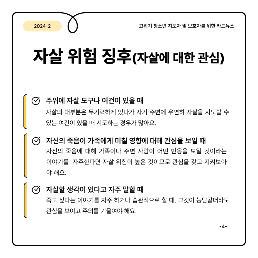 | 2024 고위기 청소년 카드뉴스 (지도자 및 보호자용) |